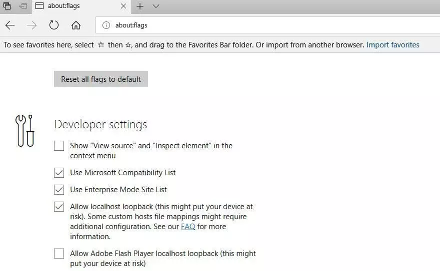 Microsoft Edge unterstützt im Rahmen des Creators Update 1703 die TCP-Erweiterung TCP Fast Open (TFO), die den Austausch von Daten über TCP beschleunigt (indem die ersten beiden Schritte des Drei-Wege-Handshakes kombiniert werden). Da das Performance-Feature jedoch auch verantwortlich für den „INET_E_RESOURCE_NOT_FOUND“-Fehler sein kann, sollten Sie es – zumindest testweise – deaktivieren, sobald Sie diese Fehlermeldung erhalten. Hierfür rufen Sie die versteckten Einstellungen des Microsoft-Browsers auf, indem Sie folgende Adresse in die Browserzeile eingeben: