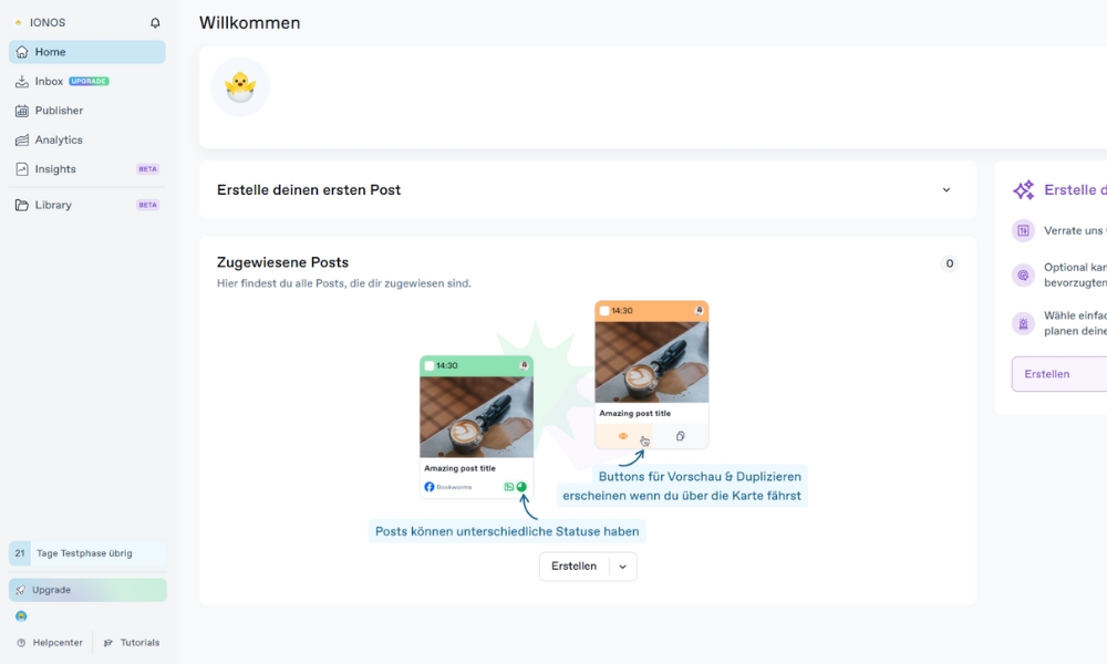 ✓ KI-Assistent und Templates: Sie helfen dabei, Posts schneller und einheitlicher zu erstellen.