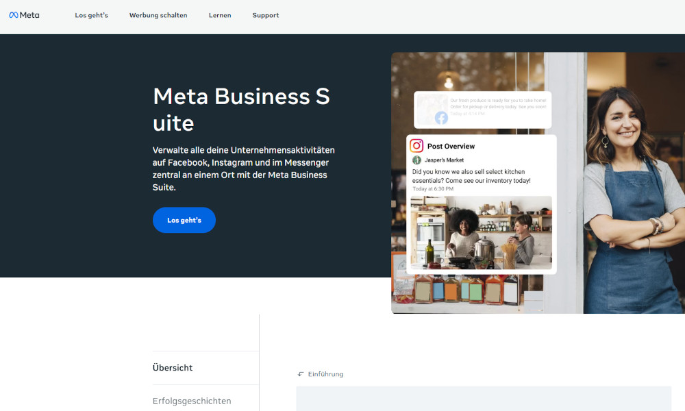 - Rufen Sie im Browser die Startseite der Meta Business Suite auf.