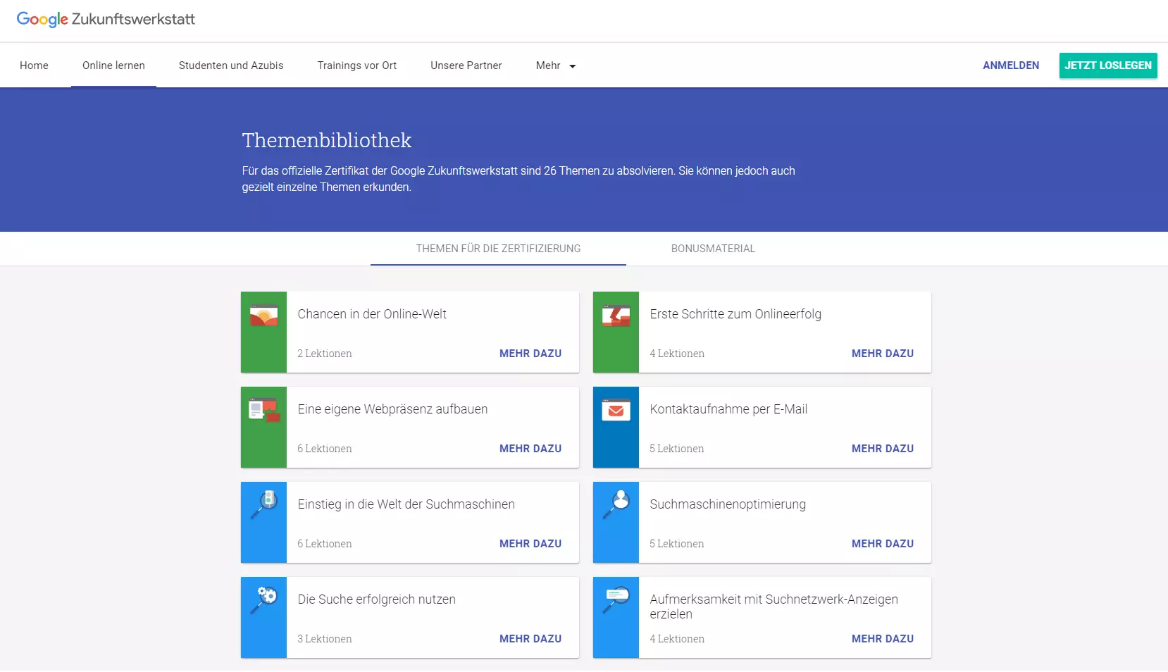 Die „Zukunftswerkstatt“ von Google erweist sich hierfür als geeignetes Vorzeigebeispiel. Neben Vor-Ort-Schulungen bietet der Suchmaschinenriese auf seinem Portal learndigital.withgoogle.com eine große Auswahl an Onlinekursen an, die mit einem anerkannten Zertifikat des Wirtschaftsverbands IAB Europe abgeschlossen werden können. Dafür absolviert man ein strukturiertes Curriculum aus 26 Themen und erwirbt Kompetenzen in Bereichen wie Mobile-Marketing, SEO, Web-Analytics und Content-Marketing. Das vollständige Angebot ist absolut kostenlos, setzt aber eine vorherige Registrierung voraus, durch die der Konzern jede Menge Leads für weitere Marketing-Maßnahmen sammeln kann. Zudem ermöglicht der Umfang und die professionelle Produktion des bereitgestellten Videomaterials eine lang andauernde Interaktion zwischen den Kursteilnehmern und Google, das sich einmal mehr als herausragender Information Hub beweisen kann.