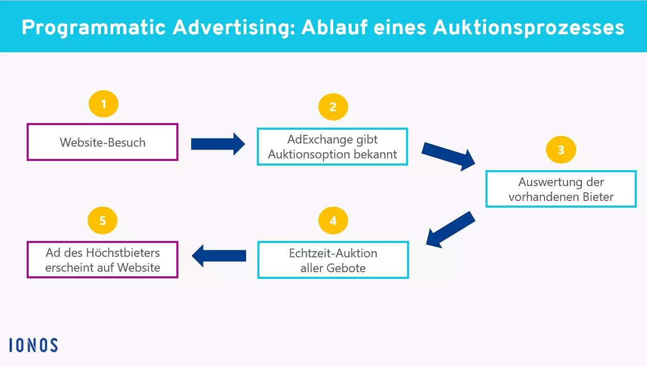 Besucht ein Nutzer beispielsweisen einen Onlineshop, werden die Nutzerdaten an AdExchange (Plattform zum Kauf und Verkauf von programmatischen Anzeigen) geschickt. Die Daten werden dort mit den Kriterien von Werbetreibenden abgeglichen und eine Echtzeit-Auktion findet statt. Diese Prozesse laufen innerhalb von Millisekunden statt, während die Website lädt. Die durchschnittliche Ladezeit beträgt 2,6 Sekunden. Eine Auktion dauert in der Regel zwischen 50 und 100 Millisekunden.