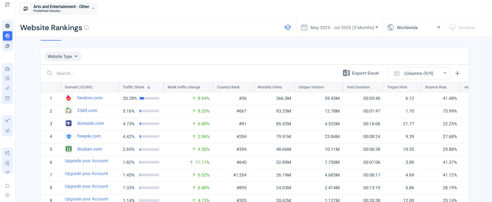 Präzise Angaben zum Traffic lassen sich mit SimilarWeb nicht immer gewinnen. Dennoch bietet das Tool einen guten Überblick und schlüsselt auch die einzelnen Traffic-Quellen auf. Das Top Websites Ranking eignet sich hervorragend, um die erfolgreichsten Websites bestimmter Branchen mit wenigen Klicks zu identifizieren.