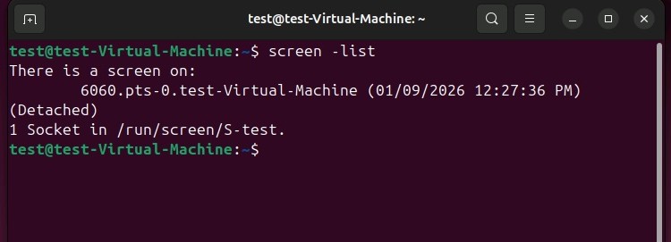 Anschließend führen Sie das folgende Kommando aus, um alle aktiven Bildschirmsitzungen anzuzeigen: