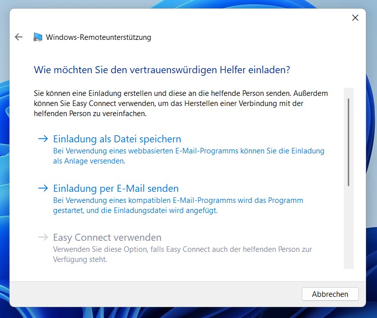 Variante 1: Windows-Remoteunterstützung