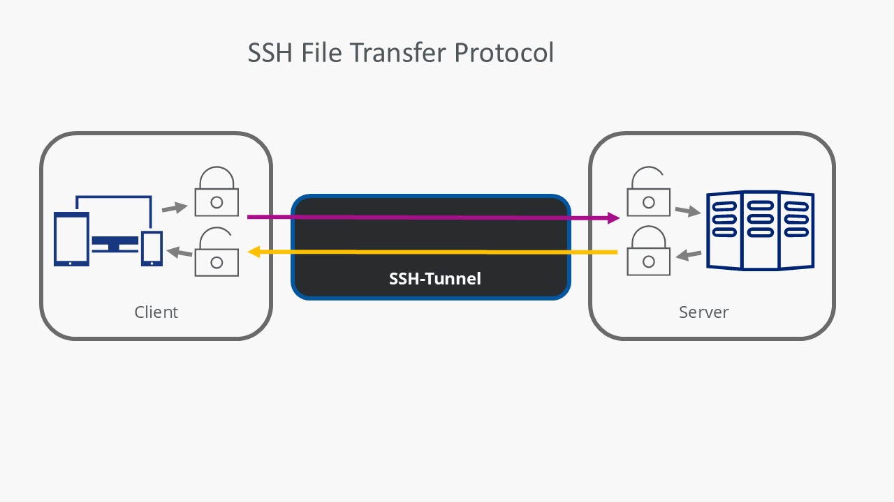 SFTP ist ein sicheres Netzwerkprotokoll zum Übertragen, Verwalten und Speichern von Dateien über verschlüsselte Verbindungen. Es basiert auf dem SSH-Protokoll und schützt Daten vor unbefugtem Zugriff während der Übertragung. Im Gegensatz zu herkömmlichem FTP sorgt SFTP für eine vollständig verschlüsselte Kommunikation.