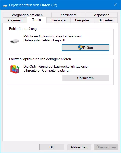 - Sie starten chkdsk über die Datenträgerüberprüfung im Explorer