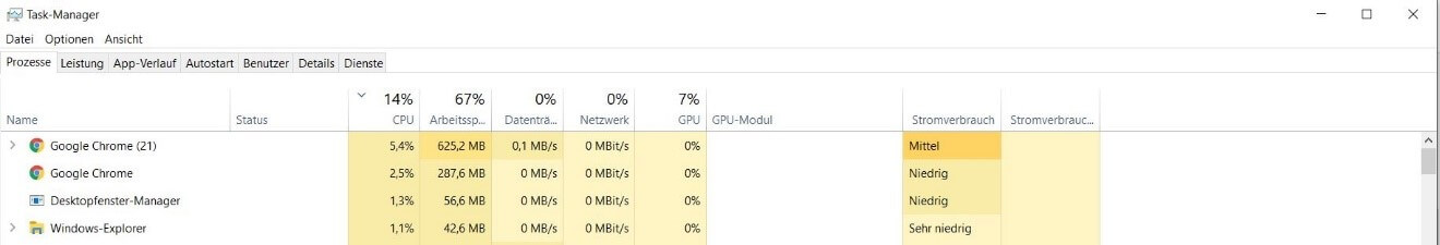 Zu den standardmäßigen Prozessen im Hintergrund gesellen sich häufig auch eine Menge an benutzergesteuerten Prozessen, wenn Sie ein oder mehrere Anwendungsprogramme starten und verwenden. Typischerweise laufen beispielsweise oft parallel ein Browser mit mehreren Tabs, ein Text-Editor mit geöffnetem Dokument, ein E-Mail-Client, ein Grafikprogramm und Software zum Abspielen von Musik. Diese Anwendungen sind zwar durch ein individuelles Symbol auf der Taskleiste deutlich sichtbar, doch ihr genauer Einfluss auf die PC-Performance ist auf den ersten Blick nicht zu erkennen.
