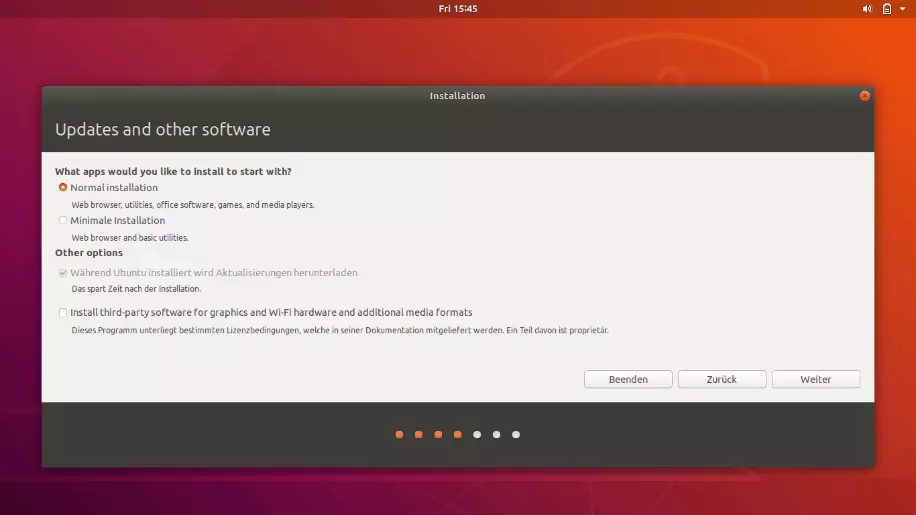 Im BIOS können Sie nun wählen, von welchem Laufwerk aus der Startprozess durchgeführt werden soll. Nehmen Sie Ihr Hauptlaufwerk, wird Windows ganz normal gestartet. Nehmen Sie allerdings den angeschlossenen Ubuntu-USB-Stick, können Sie danach aussuchen, ob Sie „Ubuntu installieren“ oder „Ubuntu vom Stick starten“ wollen. Wählen Sie mit den Pfeiltasten „Ubuntu installieren“ und bestätigen Sie die Auswahl mit Enter. Nun startet der Ubuntu-Installationsassistent.