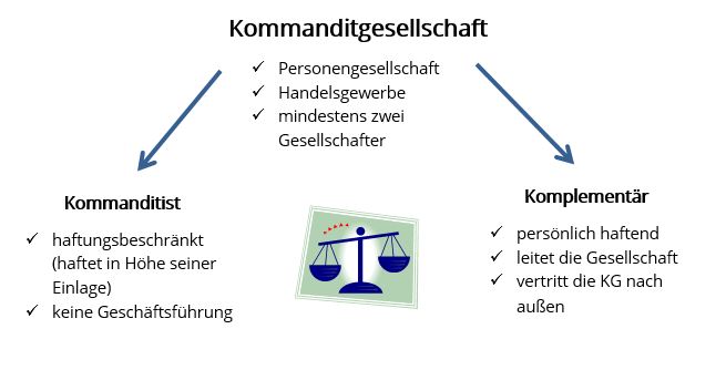 Das besondere an der Rechtsform KG – die praktisch eine Art Sonderform der Offenen Handelsgesellschaft (OHG) darstellt und grundsätzlichen denselben Gesetzen unterliegt – sind die unterschiedlichen Regelungen ihrer Gesellschafter hinsichtlich der Haftung.