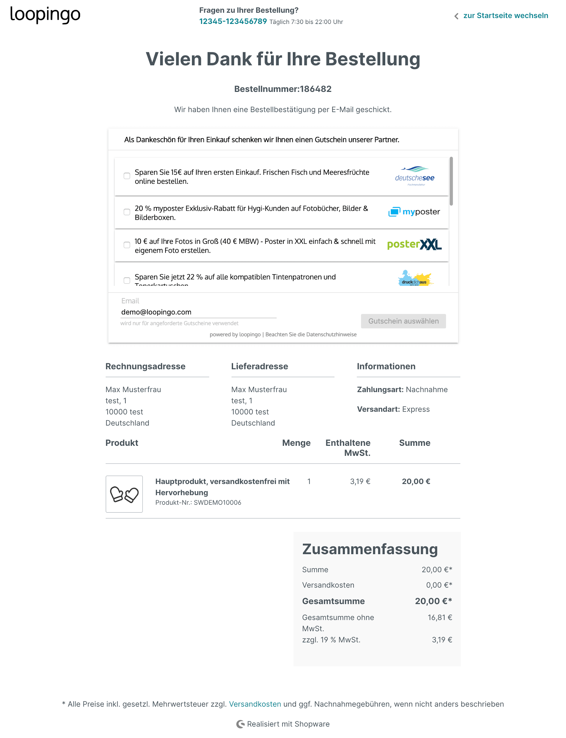 Aber: Man kann sich bei seinem Kunden in Form eines kostenlosen Kundenmehrwerts perfekt bedanken. Hier bietet beispielsweise loopingo perfekte Möglichkeiten, um dem Kunden attraktive Gutscheine von anderen Partner-Unternehmen zu schenken. Damit schlagen Sie 3 Fliegen mit einer Klappe: