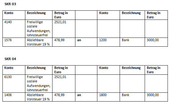 In den Buchungen nach den Standards SKR 03 und SKR 04 sieht das Ganze am Ende dann folgendermaßen aus: