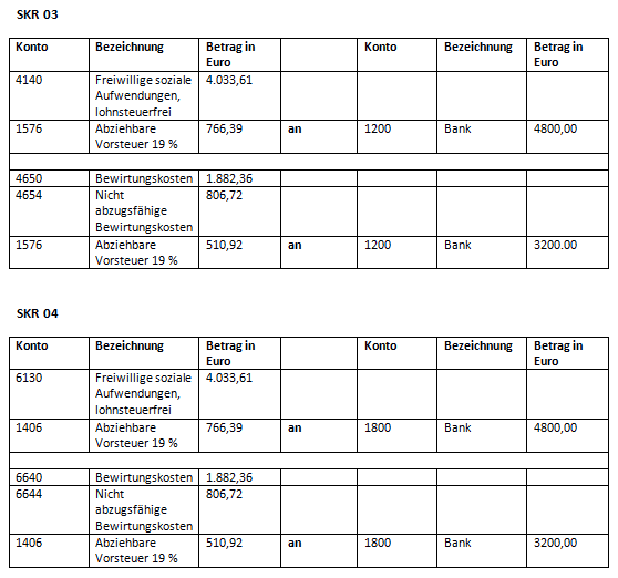 Schließlich sehen die Buchungen für Bewirtungskosten und Trinkgeld nach SKR 03 und SKR 04 folgendermaßen aus: