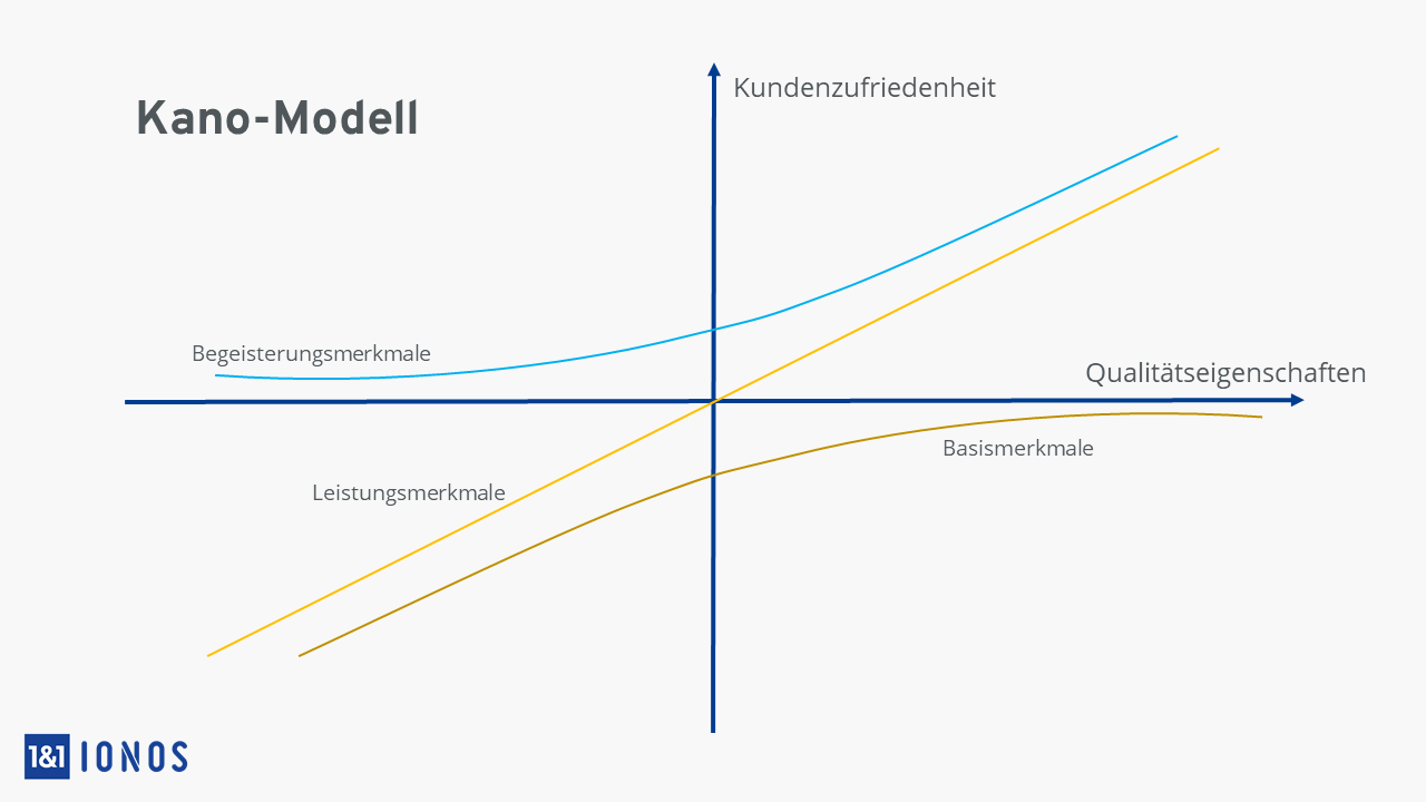 Die Auf­tei­lung in un­ter­schied­li­che Merkmale erklärt auch einen Grund­ge­dan­ken des Kano-Modells: Die Ab­we­sen­heit von Un­zu­frie­den­heit sorgt nicht au­to­ma­tisch zur Kun­den­zu­frie­den­heit. Ob es zu einer Kor­re­la­ti­on kommt, hängt von dem Merk­mals­typ ab, von dem man gerade spricht. Soll heißen: Nur, weil eine bestimmte Ei­gen­schaft eines Produkts besonders gut aus­ge­prägt ist, führt dies auch zu einer besonders starken Kun­den­zu­frie­den­heit.