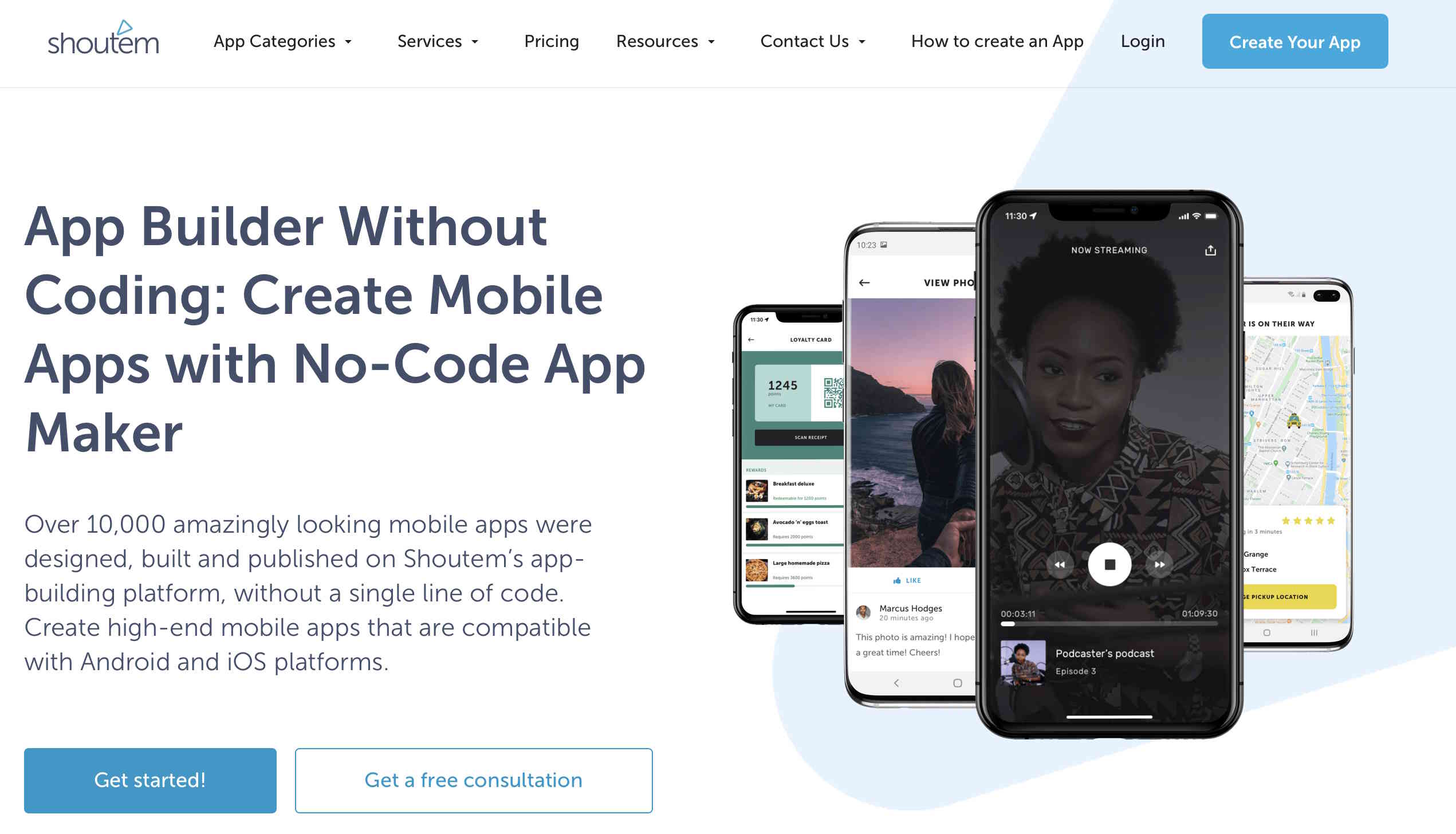 Zwei Merkmale stechen bei Shoutem besonders heraus: Zum einen können Sie eigens für die App entwickelte Social-Media-Funktionen für die Umsetzung einer eigenen Community-Plattform nutzen. Zum anderen ist Shoutem an zahlreiche Werbenetzwerke angebunden, wodurch sich viele Optionen für das In-App-Advertising ergeben. Der App-Baukasten für Android und iOS zeichnet sich ferner durch eine einfache Bedienung aus. Auch Shopping-Systeme lassen sich mit Shoutem leicht realisieren. Dafür kann man die App mit Shopify verknüpfen, um so auf verschiedenen Plattformen synchron verkaufen zu können.