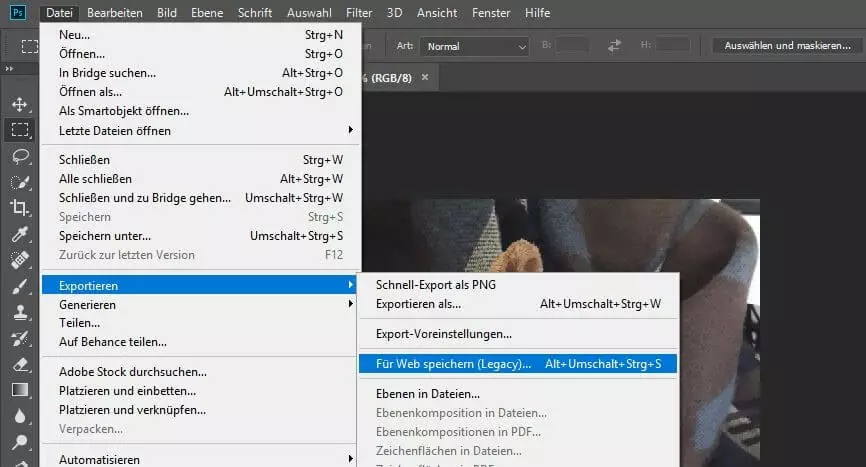 Option 2: Bilder komprimieren mit Photoshop