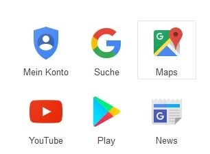 Um einen Kartenausschnitt mit eigenen Elementen zu gestalten, ist es notwendig, ein Google-Konto zu erstellen – insofern Sie nicht schon eines besitzen. Nach der Anmeldung öffnen Sie Ihre Google-Apps und starten den Kartendienst mit einem Klick auf „Maps“.