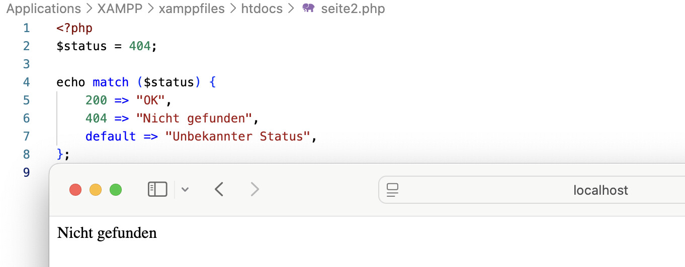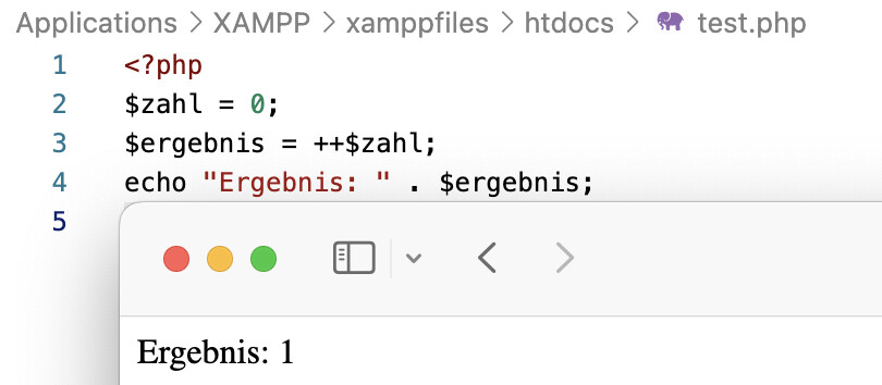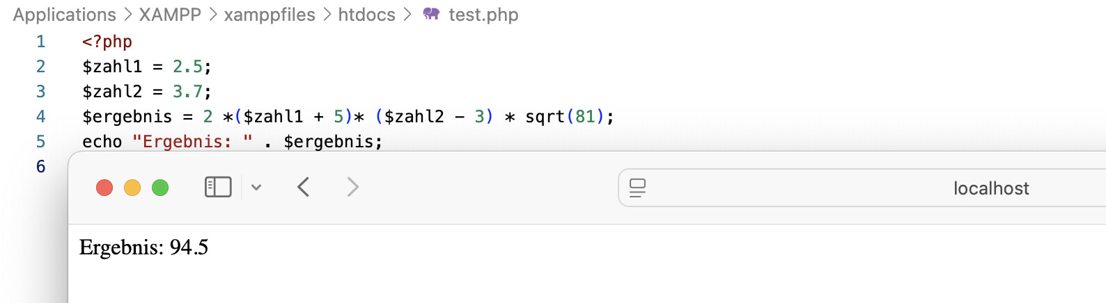 ?>phpIm Webbrowser aufgerufen wird das Ergebnis der Skriptausführung folgendermaßen dargestellt.