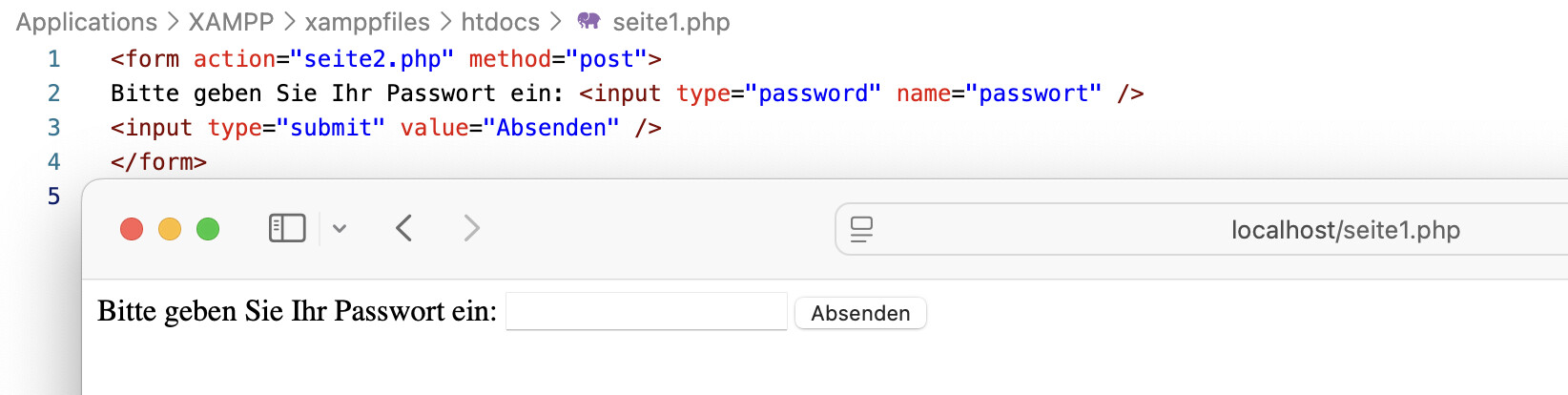 Wir öffnen erneut unser Formular zur Passwortabfrage in Seite1.php und ergänzen ein Eingabefeld für den Benutzernamen: