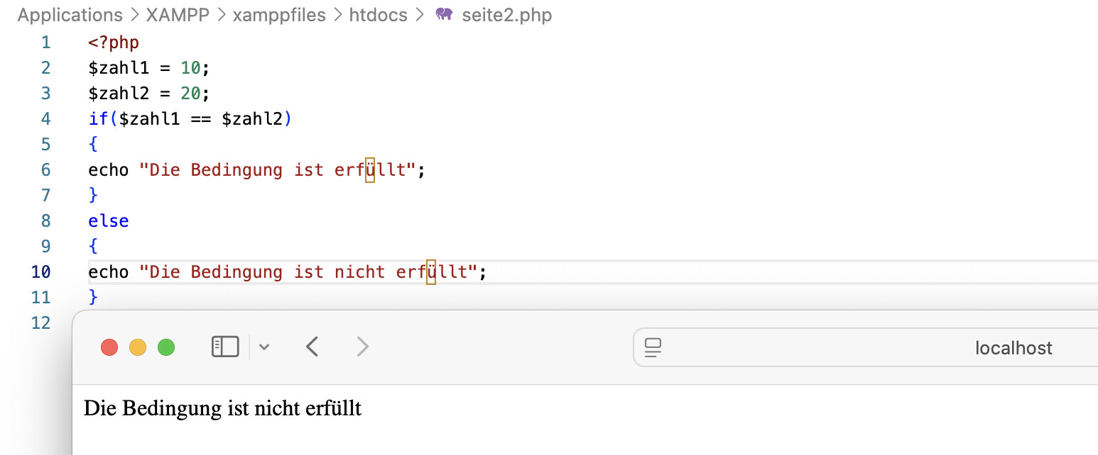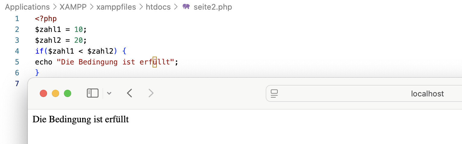 ?>phpStatt der Ziffer 5 gibt uns PHP den unter if definierten Textstring Die 5 lassen wir aus! aus.