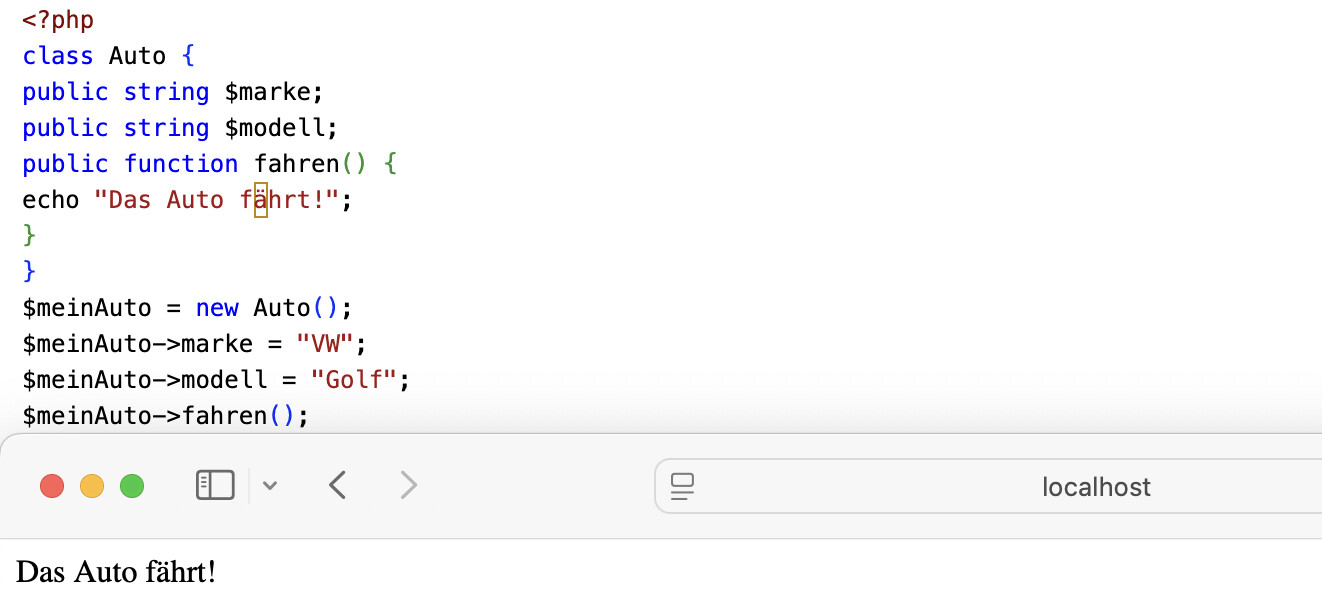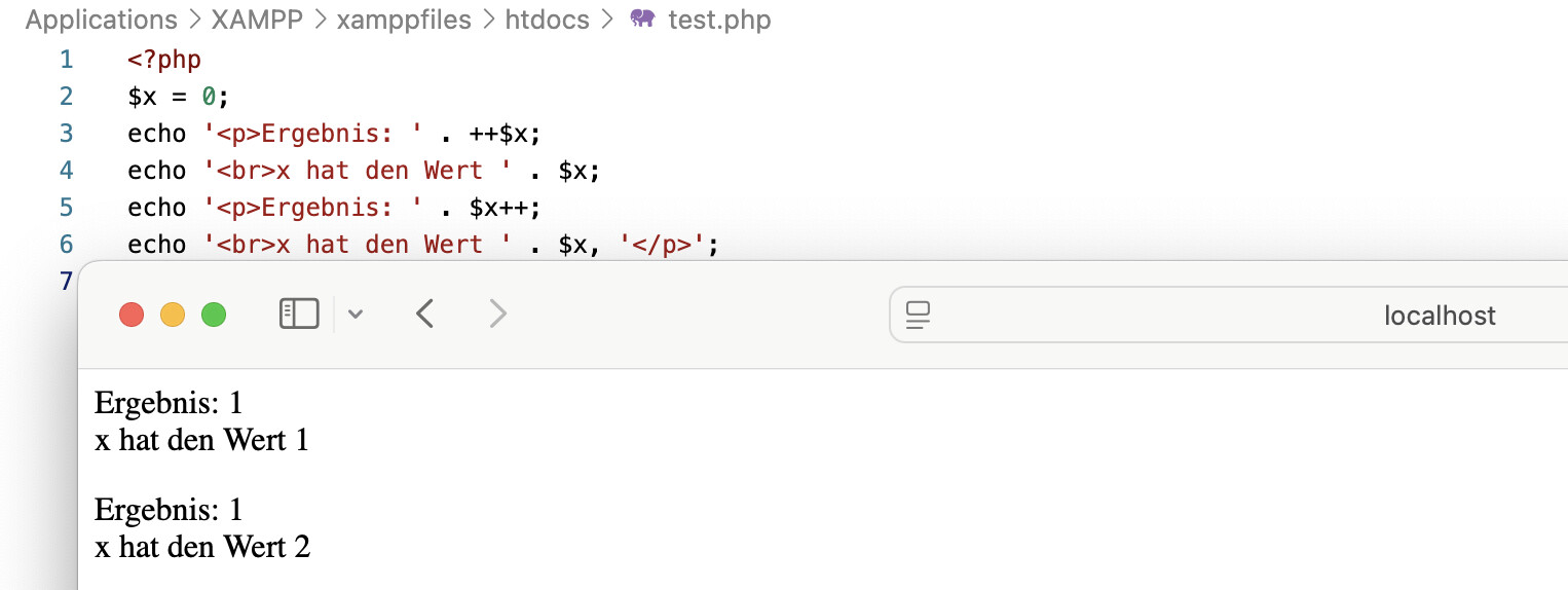 Im Codebeispiel wird für die Variable $author erst der Wert John Doe vergeben und anschließend durch den Wert Max Mustermann ersetzt.