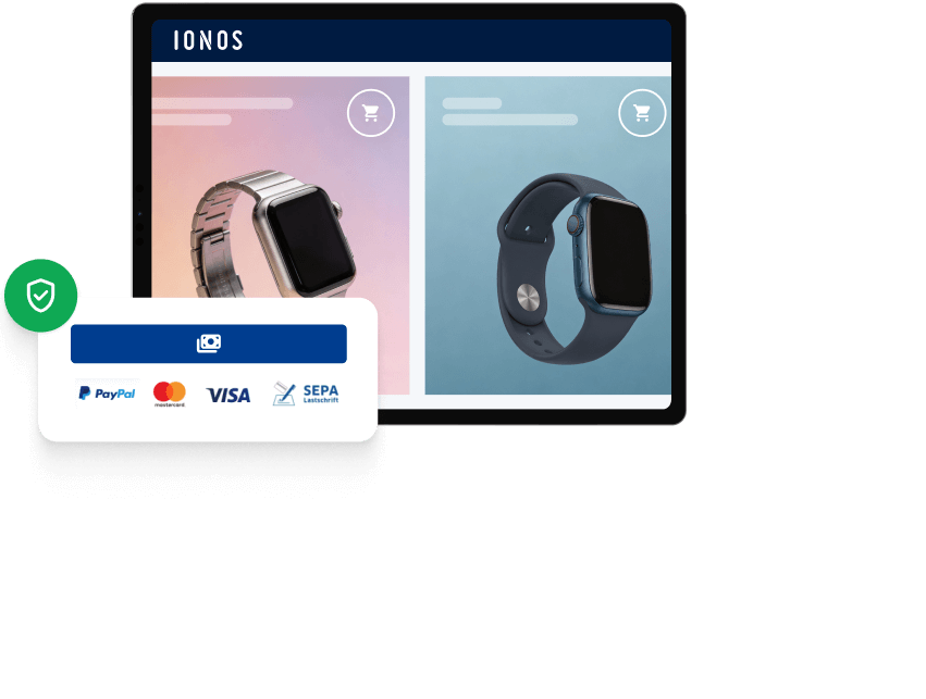 Mit IONOS ist es besonders leicht, ipayment als PSP in Ihren Onlineshop einzubinden. Buchen Sie ipayment einfach zu Ihrem Hosting-Paket dazu. In die meisten Shoppinglösungen lässt sich der PSP reibungslos integrieren. Sie entscheiden, welche Zahlungsmethoden Sie anbieten wollen und können diese jederzeit ändern. Und Sie wählen zwischen flexibler Monatslaufzeit und besonders günstigen Jahrespaketen. Holen Sie sich bei uns alles aus einer Hand: Bei IONOS erhalten Sie auf Wunsch die Komplettlösung aus Hosting, Shop Software und ipayment.
