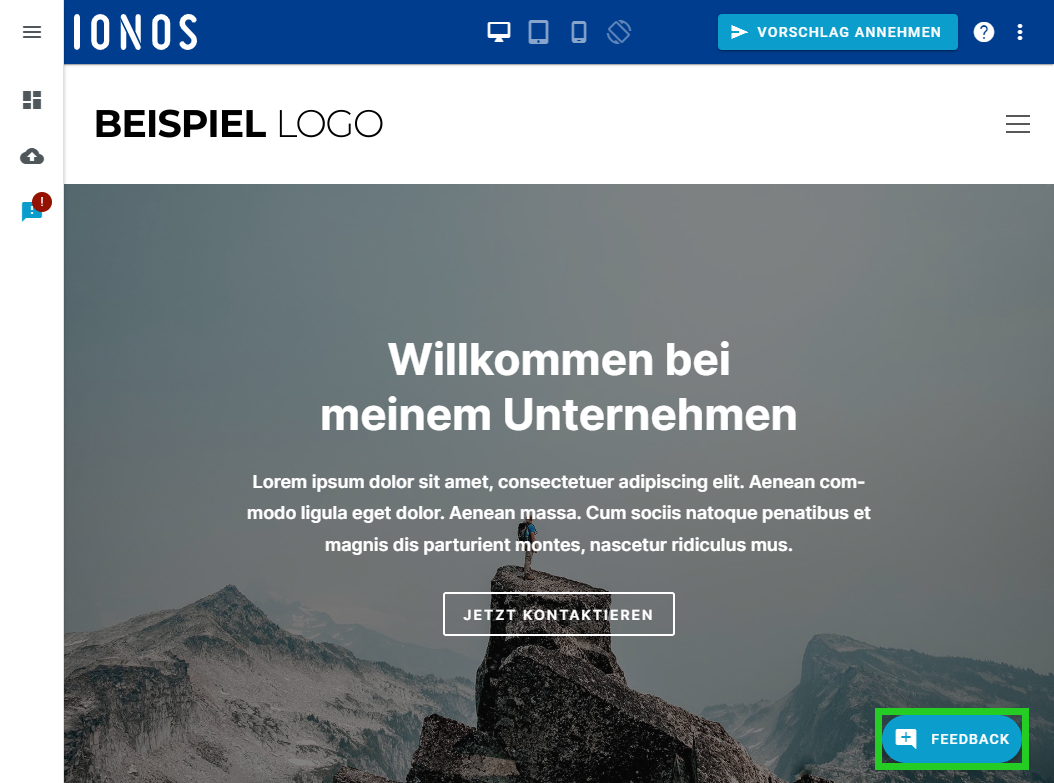 Um Ihr Feedback an das Website Design Team zu senden, klicken Sie unten rechts auf Feedback. Weiter Informationen erhalten Sie im Hilfe-Center-Artikel “Website Design Service: Feedback geben”.