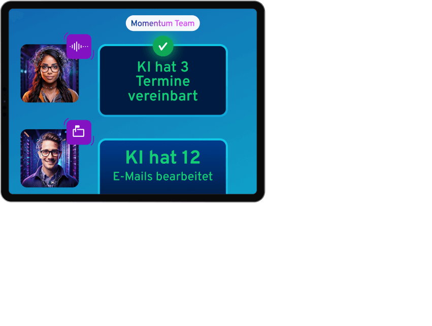 Es spielt keine Rolle, ob Sie den KI-Textgenerator oder eine andere Funktion von Momentum Team nutzen – die KI-Lösung ist 24/7 verfügbar und bietet Ihren Daten jederzeit den bestmöglichen Schutz: